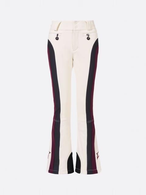 The Queenie Ski Pant has been designed with retro sport-inspired striping detail. Crafted with Toray Dermizax technology, these pants keep you comfortably dry with water-resistant breathability. The 4-way stretch fabric ensures effortless movement. With snow gaiters and an adjustable zipper at the hem to make it easy to adjust your ski boots. Flared silhouette Mid-rise front waist with high-rise back for optimal coverage and unrestricted movement Zip fly with button closure Two front-zip pockets Thermal fleece lining Adjustable zipper at hem to comfortably fit over boots Snow gaiters with interior silicone elastic and exterior snap closures for added protection Anti-tear guards inside lower leg to prevent against damage from sharp skis or boots Unmatched freedom of movement with the 4-way stretch technology Crafted with Toray Dermizax technology, water-resistant and breathable to keep you comfortable and dry Imported Product Code: W30010732191 Materials & Care Materials - Shell: 80% nylon, 20% spandex - Backing: 94% polyester, 6% spandex Care - Machine wash at 40C - Do not bleach - Do not tumble dry - Cool Iron - Dry cleanable