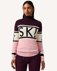 A Perfect Moment icon, the Schild Sweater is our bestselling knit—crafted from soft, temperature-regulating Merino wool for reliable warmth on and off the slopes. With its fitted silhouette and bold “SKI” intarsia across the chest, it delivers signature style in a timeless winter staple. Breathable and versatile, it layers effortlessly under outerwear or stands alone for apres. Pair with any of our Aurora ski pants for a considered, cold-weather look. Fitted Intended to hit at the hip Turtleneck Long sleeves Rib knit hem and cuffs "Ski" intarsia-knit at the center front This knitwear is delicate. Please treat with caution as abrasion can damage the fabric. May pill slightly, this is natural with fine knit fabric Imported Product Code: W30000752231 Materials & Care Materials - 100% Merino wool Care - Hand wash cold separately - Do not bleach - Lay flat to dry - Cool iron if needed or dry clean