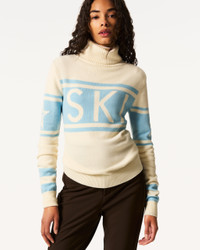A Perfect Moment icon, the Schild Sweater is our bestselling knit—crafted from soft, temperature-regulating Merino wool for reliable warmth on and off the slopes. With its fitted silhouette and bold “SKI” intarsia across the chest, it delivers signature style in a timeless winter staple. Breathable and versatile, it layers effortlessly under outerwear or stands alone for apres. Pair with any of our Aurora ski pants for a considered, cold-weather look. Fitted Intended to hit at the hip Turtleneck Long sleeves Rib knit hem and cuffs "Ski" intarsia-knit at the center front This knitwear is delicate. Please treat with caution as abrasion can damage the fabric. May pill slightly, this is natural with fine knit fabric Imported Product Code: W30013272346 Materials & Care Materials - 100% Merino Wool Care - Hand wash cold separately - Do not bleach - Lay flat to dry - Cool iron if needed or dry clean
