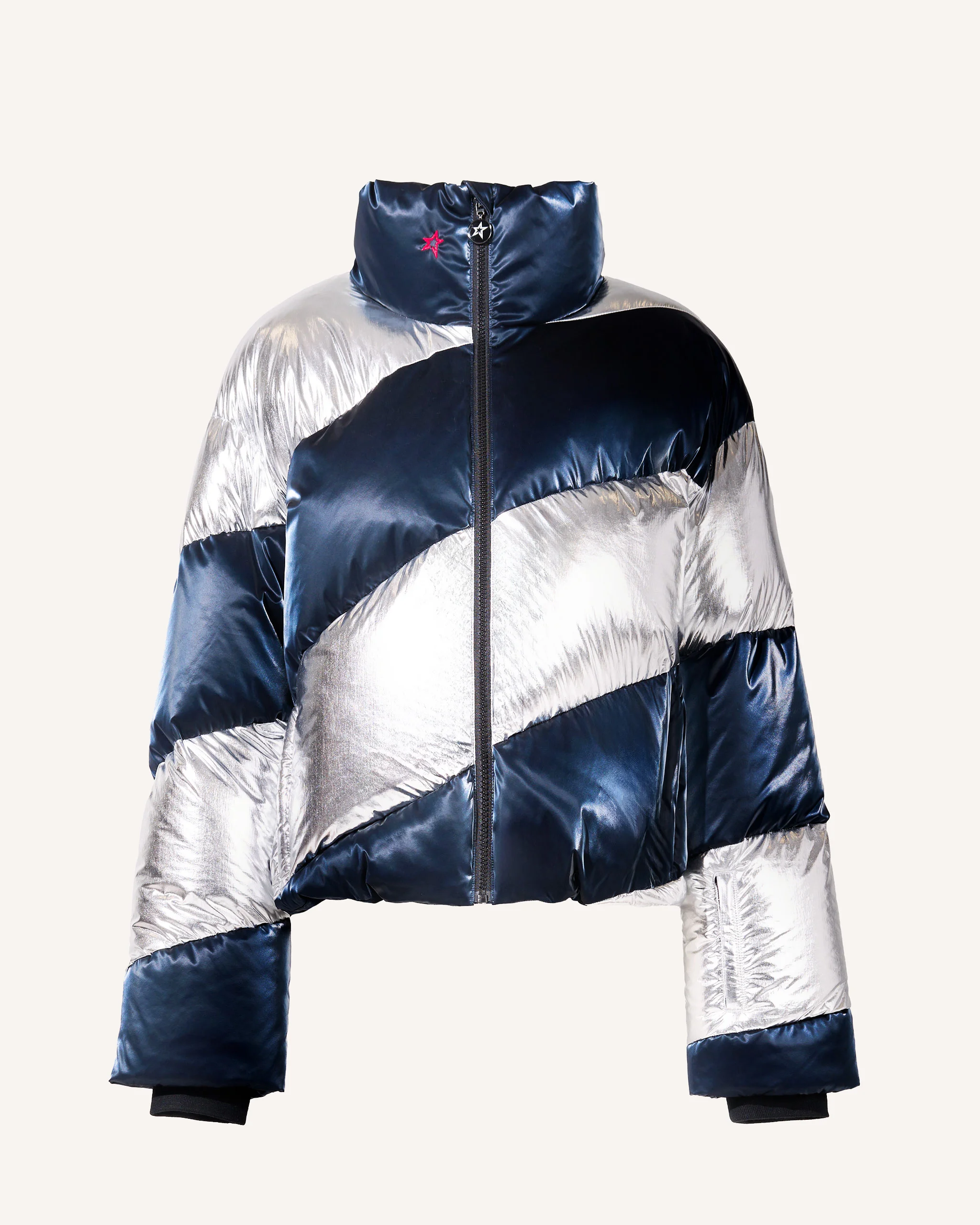 A heritage design returns. The Super Mojo Down Jacket is a Perfect Moment classic, defined by its distinctive diagonal graphic padding and relaxed, hip-grazing silhouette. Fully water resistant and with 700-fill-power down insulation, it’s packed with ski-day features: a high-neck collar, adjustable snow skirt, and internal goggle pocket with cleaning cloth. Pair with the Carving Ski Pant to complete the retro-modern mood. Relaxed fit, intended to hit at the hip Full-front zip closure Two front-zip pockets External ski pass pocket Internal chest pocket Internal goggle pocket and cloth cleaner Adjustable snow skirt High-neck collar 700-fill-power down insulation Fully lined You should expect some wear with this fabric, please treat with caution as abrasion can damage the fabric Imported Product Code: W30011312224 Materials & Care Materials - Shell: 100% nylon - Lining: 100% nylon - Insulation: 90% goose down, 10% feather Care - Hand wash cold - Do not bleach - Do not iron - Tumble dry low - Do not dry clean