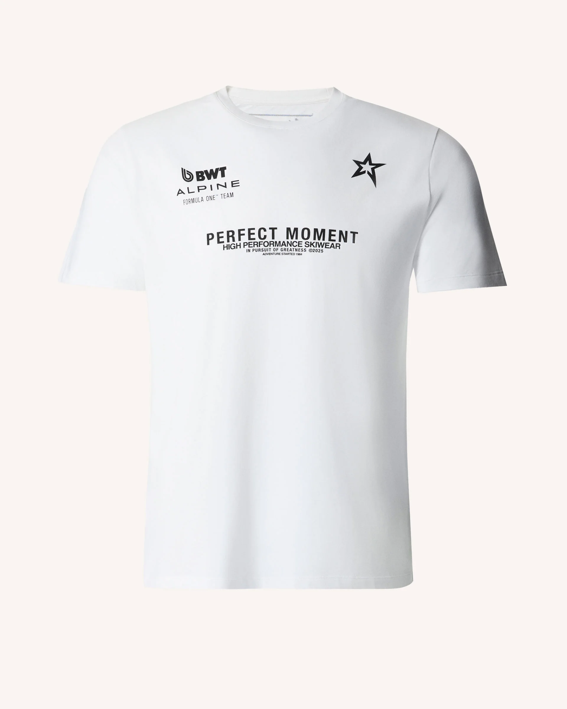 Inspired by the energy of the track and the clarity of alpine design, this Perfect Moment x BWT Alpine tee brings a sharp, modern edge to everyday dressing. Made from soft, breathable cotton with bold contrast logo detailing, it’s a go-anywhere staple for downtime, travel days, or layering post-slope. Regular fit Classic average weight t-shirt Rib-knit crew neck collar Seamless, transfer-screen prints Embroidered patch on back from historic alpine race suit Product Code: M10004742368 Materials & Care Materials - 100% Cotton Care - Gentle machine wash at 30°C - Wash inside out - Do not bleach - Do not dry clean - Do not tumble dry - Cool iron on reverse - Wash in a net bag