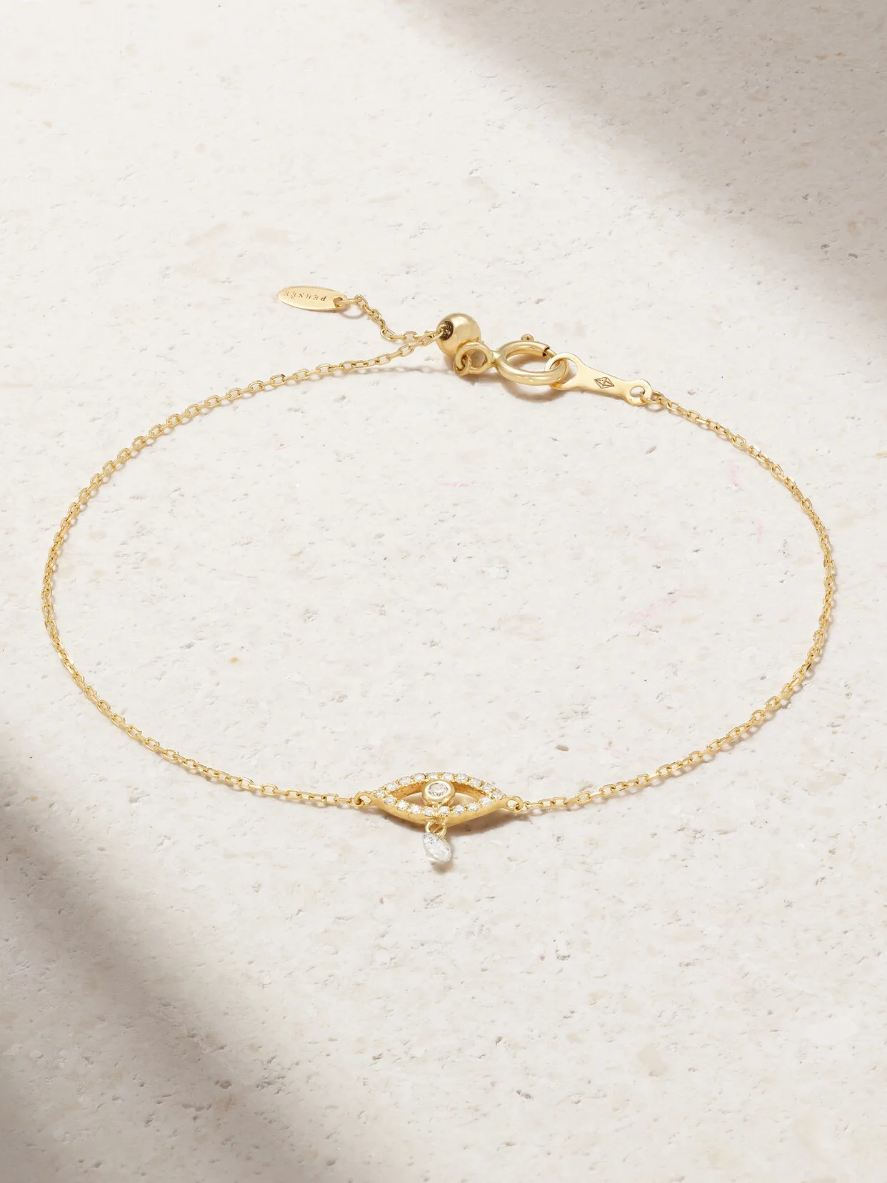 Persee's dainty bracelet is made from 18-karat gold and centered with an ancient 'Evil Eye' talisman. It's dusted with diamonds and features the label's signature dangling gem that glitters with every hand movement. It can be adjusted to customize the fit.