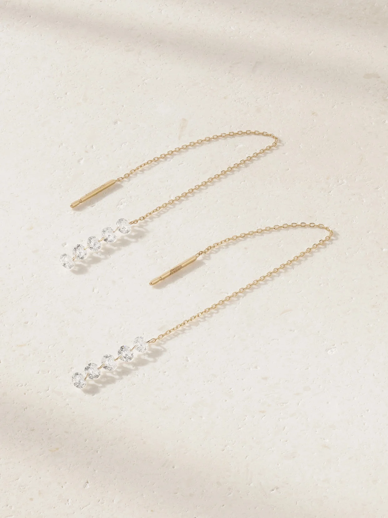 Persee's 'Riviere' earrings have a beautiful threader design that dangles elegantly from your lobe. They're made from 18-karat gold and have five diamonds suspended at one end - the signature 'pierced' settings showcase the natural brilliance of each stone. Wear yours with casual and formal outfits alike.