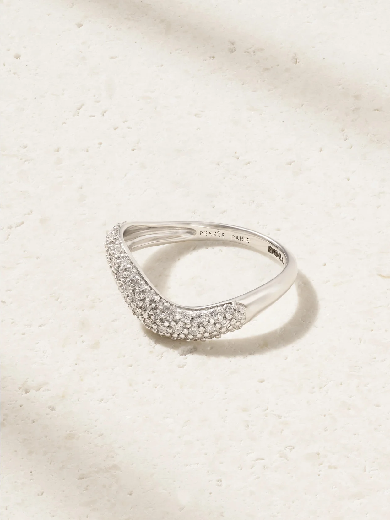 Artfully shaped to resemble a rolling wave, Persee's 'Wave Alliance' ring is crafted from 18-karat white gold and set with pave diamonds that sparkle around the finger. Wear yours solo or stacked with similar styles from the label.