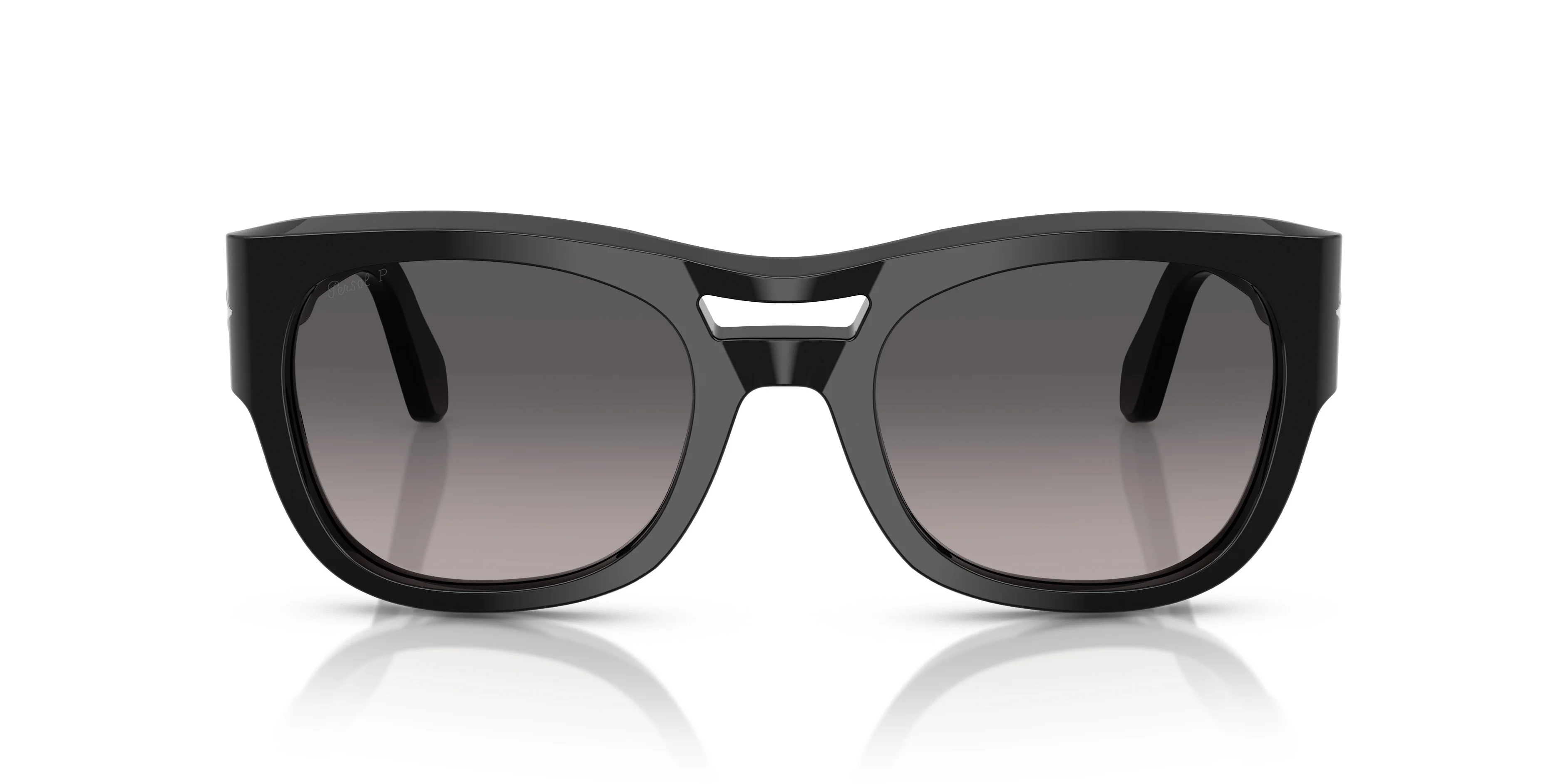 MODEL CODE: PO0064S 95/M3 54-22 FRONT COLOR: Black LENS COLOR: Light Grey Gradient Dark Grey LENS MATERIAL: Crystal FRAME MATERIAL: Acetate FIT: Wide Fitting BRIDGE CHOICE & NOSEPAD: High Bridge Fit MADE IN: Italy