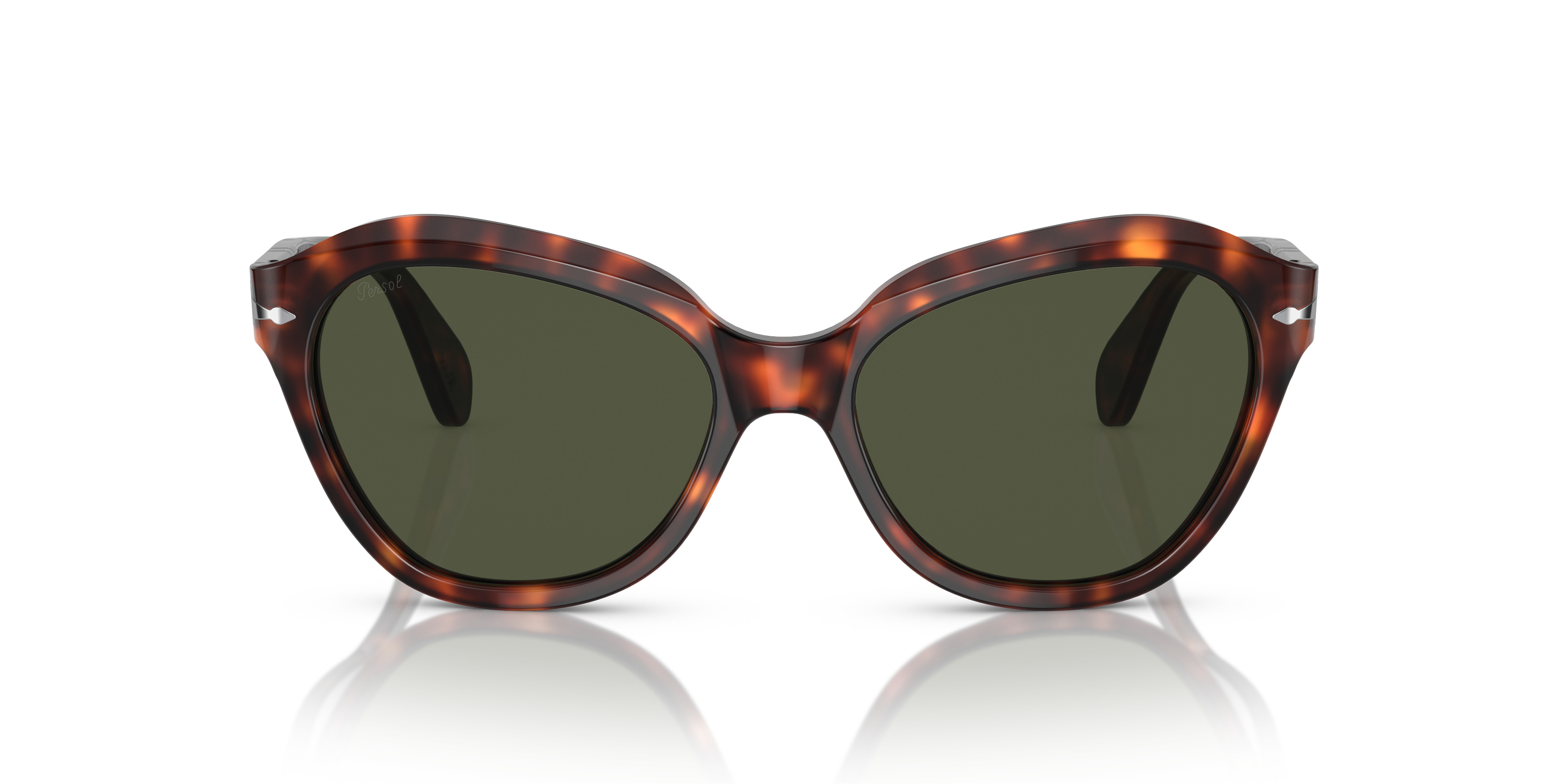 Modelled on the celebrity allure of screen stars from the 80's, this stand-alone style pays tribute to feminine expression with meticulously crafted Persol details and a perfectly tailored fit. MODEL CODE: PO0582S 24/31 54-17 FRONT COLOR: Havana LENS COLOR: Green LENS MATERIAL: Crystal FRAME MATERIAL: Acetate FIT: Regular Fitting BRIDGE CHOICE & NOSEPAD: High Bridge Fit MADE IN: Italy