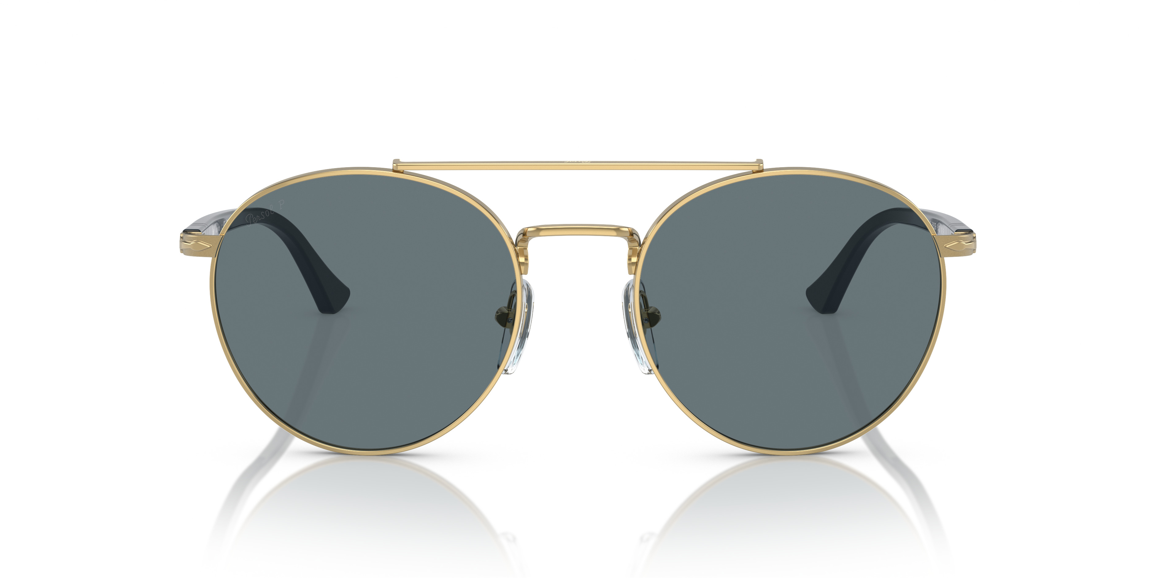 Easy-to-wear round metal shape with a double bridge paired with acetate temples available in five modern colors, and premium barberini lenses. The style is enriched by full-acetate temples with the iconic arrow and Meflecto. MODEL CODE: PO1011S 515/3R 54-20 FRONT COLOR: Gold LENS COLOR: Dark Blue Polarized LENS MATERIAL: Crystal FRAME MATERIAL: Metal FIT: Regular Fitting BRIDGE CHOICE & NOSEPAD: Adjustable Nosepads MADE IN: Italy