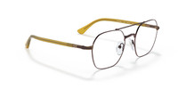 Sophisticated metal optical shape with a distinctive colored metal "inverted V" bridge make this frame as comfortable as it looks. MODEL CODE: PO2483V 1107 52-20 FRONT COLOR: Brown LENS COLOR: Clear LENS MATERIAL: Plastic FRAME MATERIAL: Metal FIT: Narrow Fitting BRIDGE CHOICE & NOSEPAD: Universal Fit MADE IN: Italy