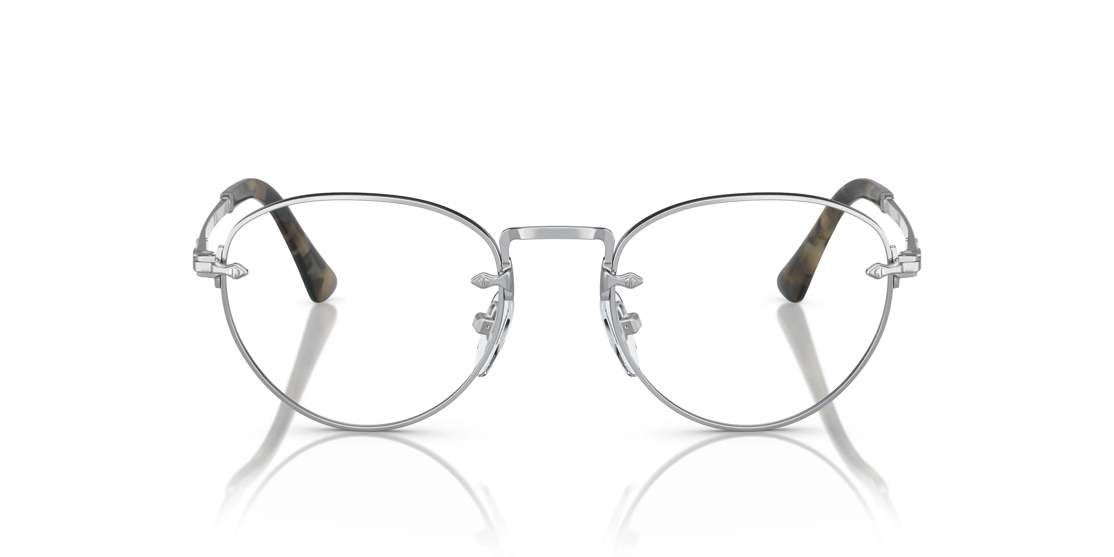 This phantos metal shape with iconic Persol arrows on the lenses evolves a classic shape into something modern, characterised by delicate profiles, a stand-out bridge and thin temples. MODEL CODE: PO2491V 1122 49-20 FRONT COLOR: Silver LENS COLOR: Clear LENS MATERIAL: Plastic FRAME MATERIAL: Metal FIT: Narrow Fitting BRIDGE CHOICE & NOSEPAD: Adjustable Nosepads MADE IN: Italy
