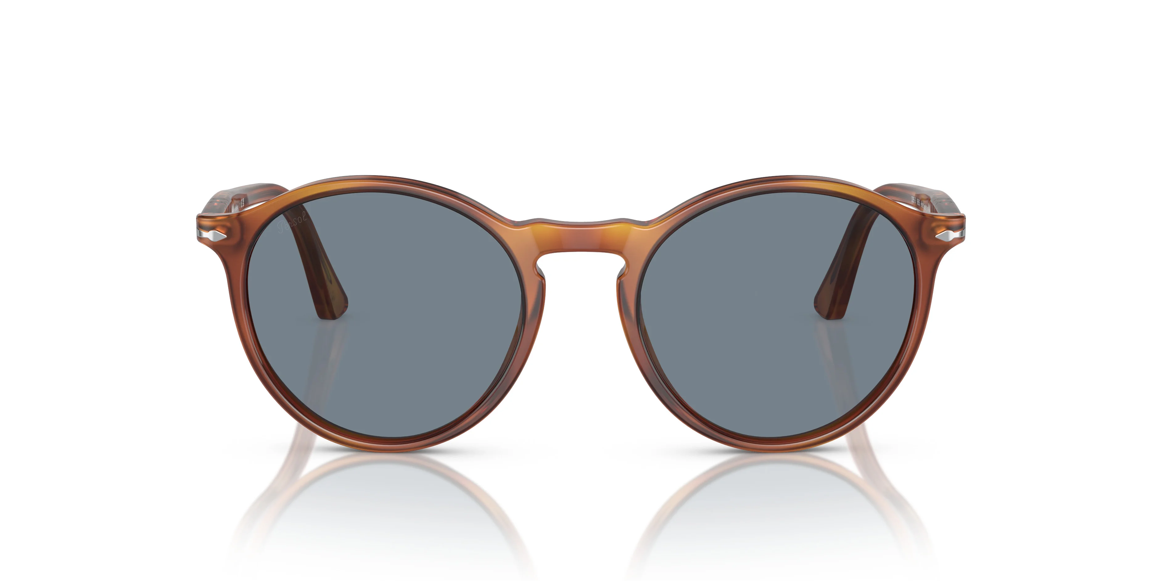 This round phantos shape with sleek silver Persol arrow and keyhole bridge provides true authenticity and easy to-wear style. MODEL CODE: PO3285S 96/56 52-19 FRONT COLOR: Terra Di Siena LENS COLOR: Light Blue LENS MATERIAL: Crystal FRAME MATERIAL: Acetate FIT: Regular Fitting BRIDGE CHOICE & NOSEPAD: High Bridge Fit MADE IN: Italy