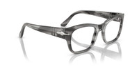 This Persol optical style features new bold 24mm temple execution with the Maflecto and iconic arrows that finish on the front. Acetate frames characterized by rich colorways. MODEL CODE: PO3297V 1192 50-21 FRONT COLOR: Striped Grey LENS COLOR: Demo Lens FRAME MATERIAL: Acetate FIT: Regular Fitting BRIDGE CHOICE & NOSEPAD: High Bridge Fit MADE IN: Italy