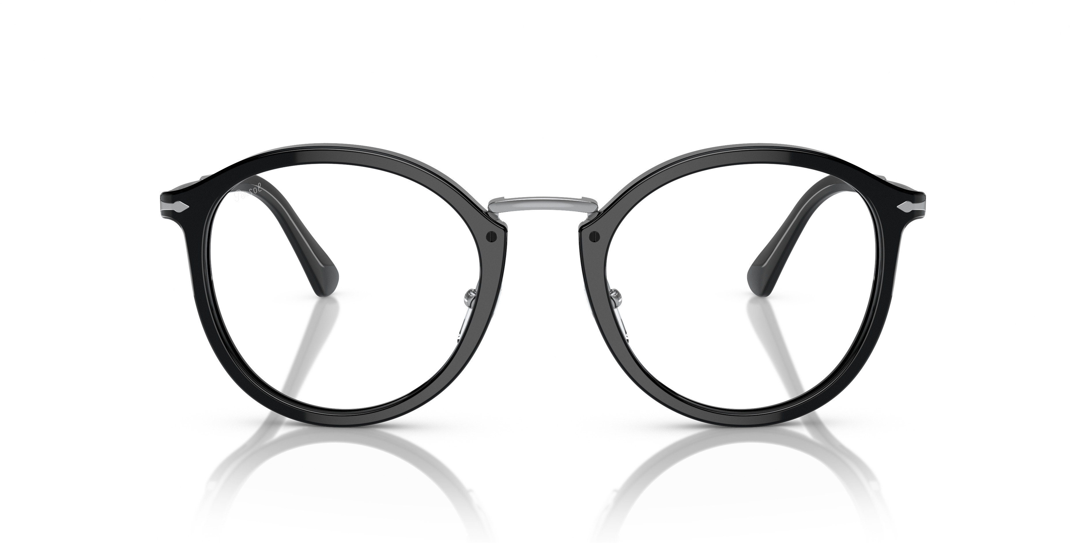 Modern phantos shape in a combination of materials with an acetate front and temple tips and a metal bridge and temples. The style is enriched by integrated flex hinges that offer a comfortable fit. MODEL CODE: PO3309S 95/GH 51-22 FRONT COLOR: Black LENS COLOR: Transitions 8 Grey LENS MATERIAL: Crystal FRAME MATERIAL: Acetate FIT: Regular Fitting BRIDGE CHOICE & NOSEPAD: Adjustable Nosepads MADE IN: Italy
