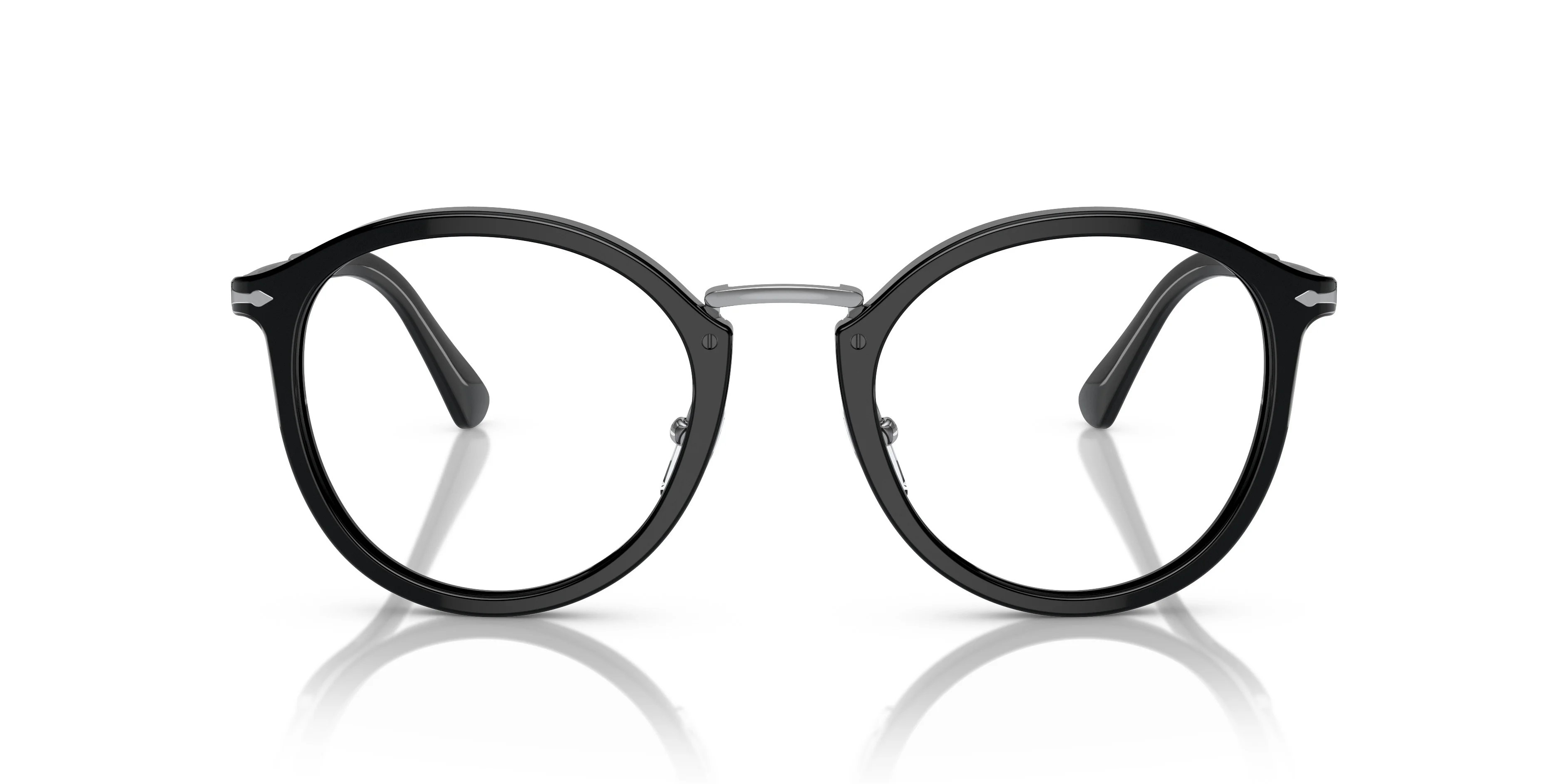 Modern phantos shape in a combination of materials with an acetate front and temple tips and a metal bridge and temples. The style is enriched by integrated flex hinges that offer a comfortable fit. MODEL CODE: PO3309V 95 51-22 FRONT COLOR: Black LENS COLOR: Clear LENS MATERIAL: Crystal FRAME MATERIAL: Acetate FIT: Narrow Fitting BRIDGE CHOICE & NOSEPAD: Adjustable Nosepads MADE IN: Italy