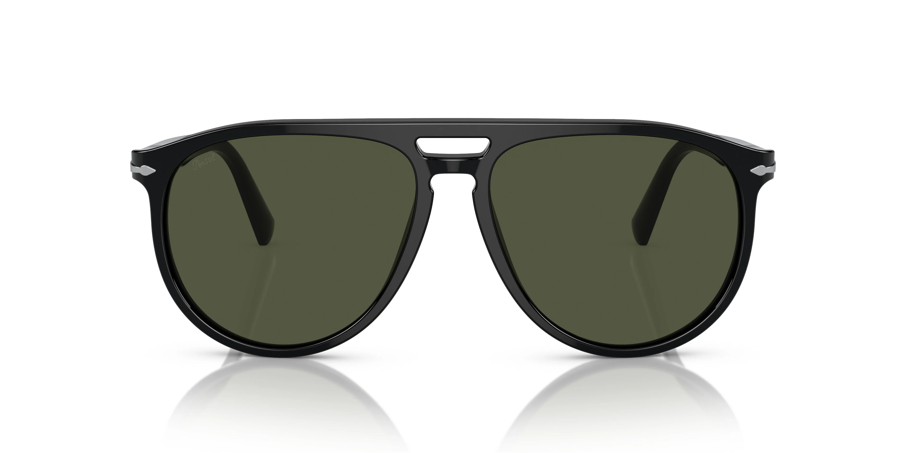Round acetate 70's inspired pilot shape with double bridge, thin temples, flex hinges and Barberini lenses. Available in 5 colorways all paired with tone-on-tone lenses. MODEL CODE: PO3311S 95/31 58-15 FRONT COLOR: Black LENS COLOR: Green LENS MATERIAL: Crystal FRAME MATERIAL: Acetate FIT: Wide Fitting BRIDGE CHOICE & NOSEPAD: High Bridge Fit MADE IN: Italy