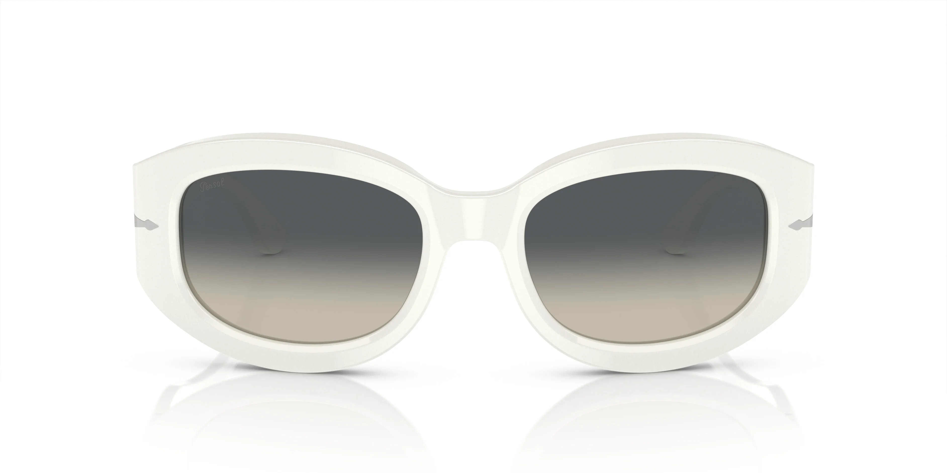 MODEL CODE: PO3335S 119471 56-20 FRONT COLOR: Solid White LENS COLOR: Light Grey Gradient Dark Grey LENS MATERIAL: Crystal FRAME MATERIAL: Acetate FIT: Wide Fitting BRIDGE CHOICE & NOSEPAD: High Bridge Fit MADE IN: Italy
