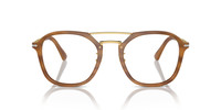 MODEL CODE: PO3352V 960 53-22 FRONT COLOR: Striped Brown LENS COLOR: Clear FRAME MATERIAL: Acetate BRIDGE CHOICE & NOSEPAD: Adjustable Nosepads MADE IN: Italy