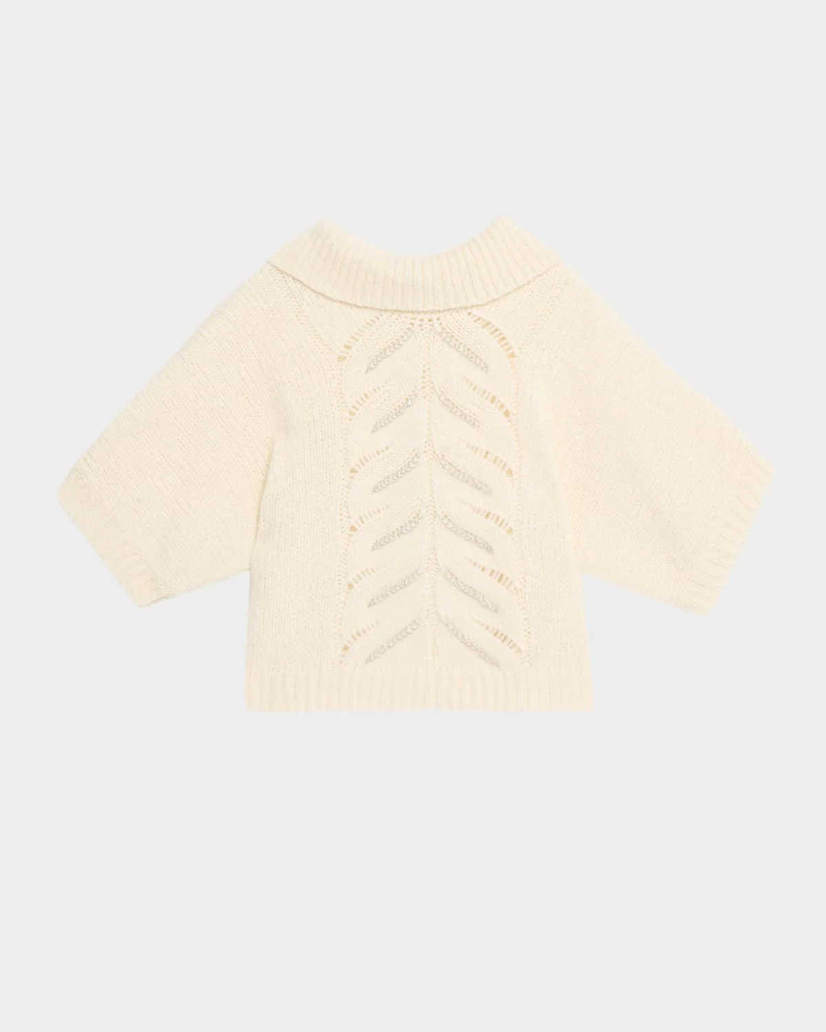 Peserico sweater highlights a maxi cableknit pattern embellished with handembroidered Punto Luce accents Approx. 21.5"L from shoulder to hem Ribbed finishes on the collar, cuffs, and hem Funnel collar Threequarter kimono sleeves Relaxed fit Pullover style Virgin wool/virgin wool/nylon/polyamide Dry clean, machine wash Made in Italy