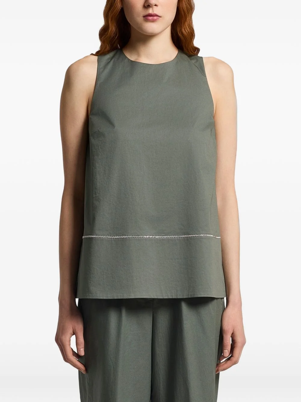 bead-detail blouse Highlights - Eucalyptus green - Round neck - Sleeveless - Tie-fastening straps Made in Italy Composition Cotton 97%, Elastane 3% Washing instructions Read Manufacturer Guidelines
