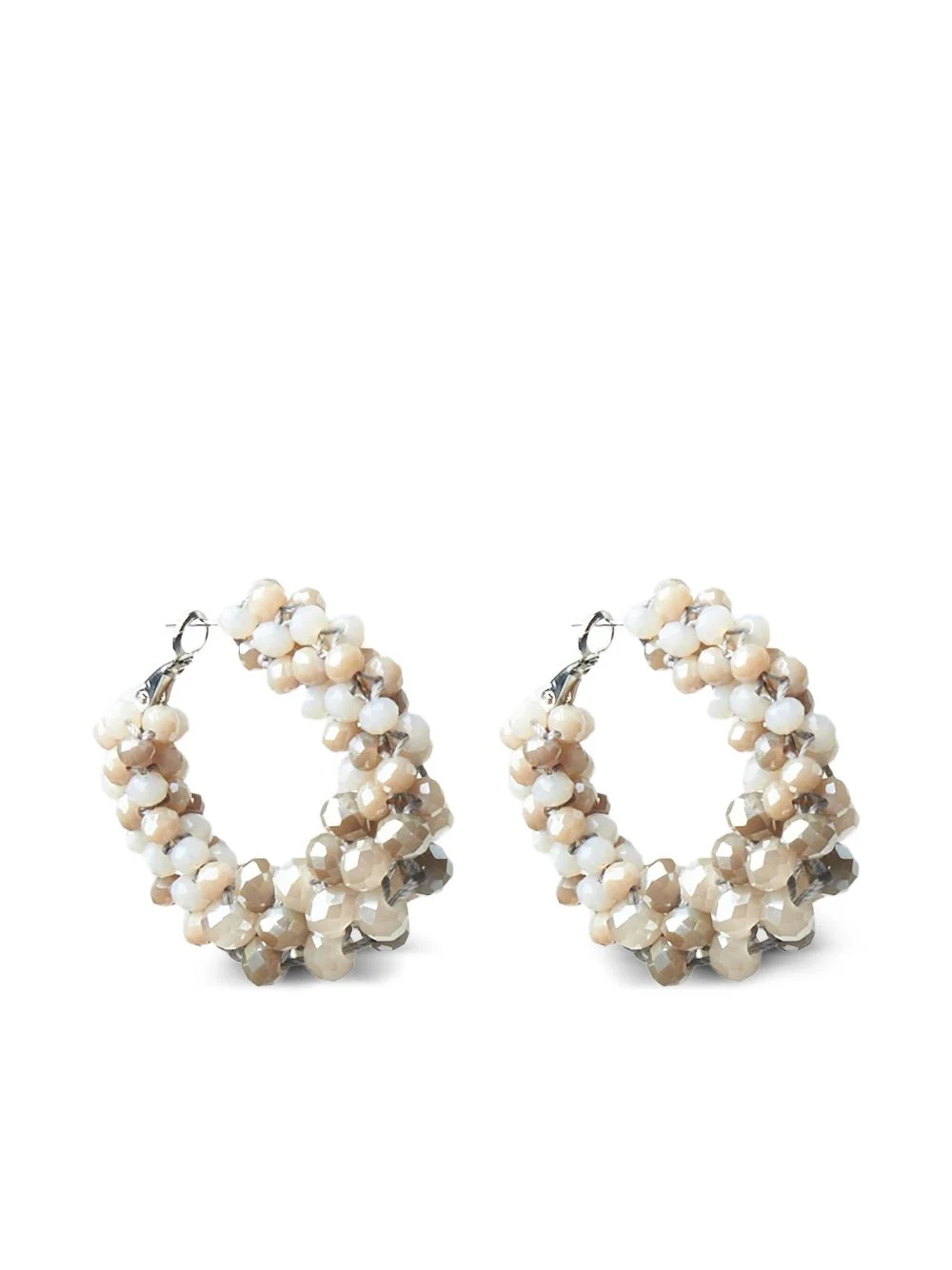 beaded hoop earrings Highlights - Beige - Crystal embellishment - Hoop shape - Faceted beads - Silver-tone clasp - These earrings come as a pair. Imported