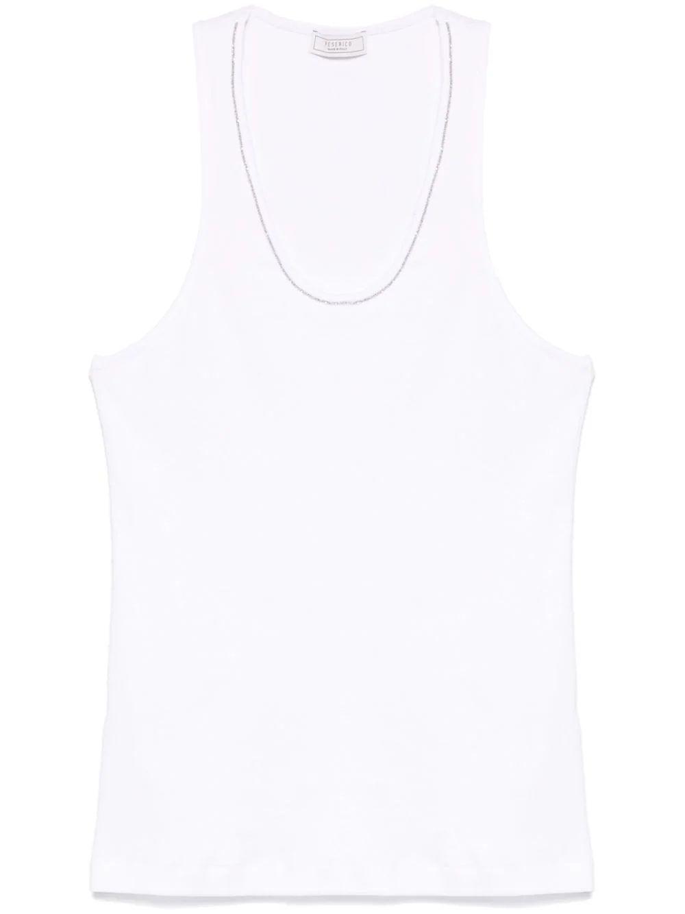beaded trim-detail top Highlights - White - Sleeveless - Scoop neck - Racerback Made in Italy Composition Cotton 94%, Elastane 6% SIZE & FIT Model measurements Height 5 ft 11 in(1.8 m) Bust/Chest 31.49 in(80 cm) Hips 36.61 in(93 cm) Waist 24.4 in(62 cm) FittingInformation Designed for a close fit throughout Made from a midweight stretch fabric, this piece offers elasticity and flexibility when worn Washing instructions Machine Wash