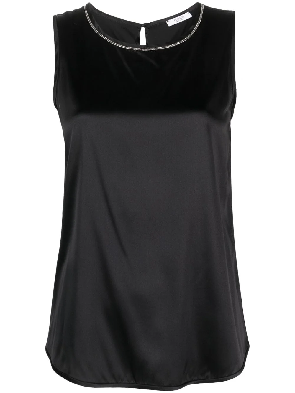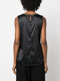 beaded-trim sleeveless silk satin top Highlights - Black - Stretch-silk - Satin finish - Beaded trim detail - Round neck - Single rear button fastening - Sleeveless - Curved hem Made in Italy Composition Silk 97%, Spandex/Elastane 3% Washing instructions Machine Wash