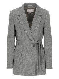 belted blazer Highlights - Stone grey - Wool blend - Notched lapels - Button fastening - Front flap pockets Made in Italy Composition Wool 90%, Cashmere 8%, Elastane 2% Washing instructions Read Manufacturer Guidelines