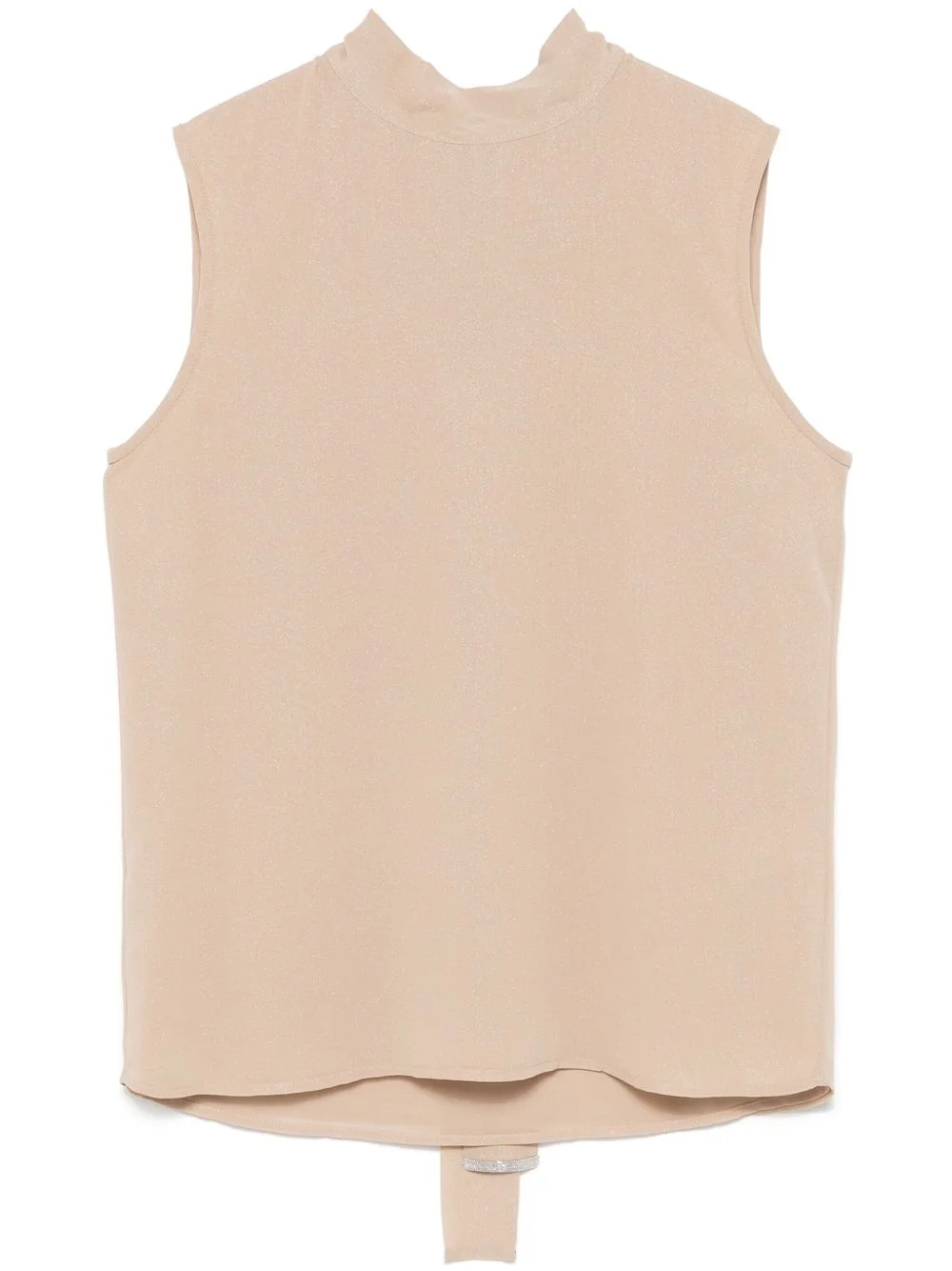 bow-fastening top Highlights - Beige - Rear bow fastening - High neck - Sleeveless - Straight hem Made in Italy Composition Polyester 90%, Polyurethane 10% SIZE & FIT Model measurements Height 5 ft 11 in(1.8 m) Bust/Chest 31.49 in(80 cm) Hips 36.61 in(93 cm) Waist 24.4 in(62 cm) FittingInformation Designed for a slim fit that sits just away from the body offering a close yet comfortable fit Made from a lightweight non-stretch fabric Washing instructions Machine Wash