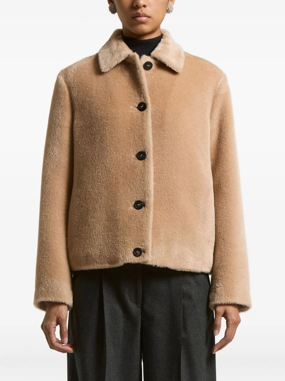 button-fastening collared jacket Highlights - Camel - Faux fur - Collared neckline - Button fastening - Long sleeves - Elasticated hem Made in Italy Composition Outer: Polyester 100% Lining: Polyester 100% Washing instructions Read Manufacturer Guidelines