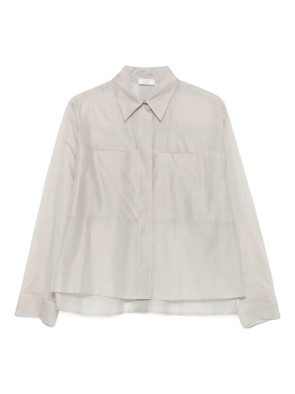 button-fastening cotton-silk shirt Highlights - Grey - Button fastening - Long sleeves - Collared neck - Chest pockets Made in Italy Composition Cotton 67%, Silk 33% SIZE & FIT Model measurements Height 5 ft 9 in(1.75 m) Bust/Chest 34.64 in(88 cm) Hips 36.61 in(93 cm) Waist 26.37 in(67 cm) Washing instructions Dry Clean Only