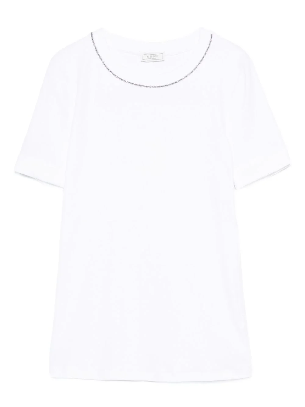 chain link-trim T-shirt Highlights - White - Chain-link trim - Crew neck - Sleeveless Made in Italy Composition Cotton 94%, Spandex/Elastane 6% SIZE & FIT Model measurements Height 5 ft 10 in(1.78 m) Bust/Chest 33.46 in(85 cm) Hips 36.22 in(92 cm) Waist 23.22 in(59 cm) Washing instructions Machine Wash