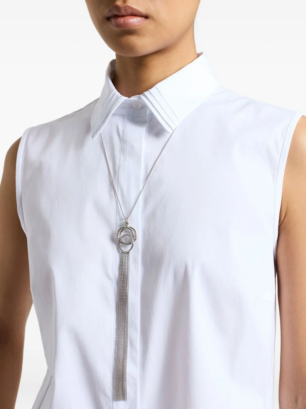 chain tassel-detail necklace Highlights - Silver - Chain necklace - Interlocking circles pendant - Tassel detail - Lobster claw fastening Made in Italy SIZE & FIT Measurement TOTAL LENGTH 25.59 in(65 cm) WIDTH 0.03 in(0.1 cm)