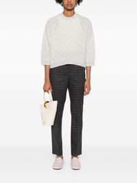 chevron-pattern sweater Highlights - Grey - Chevron pattern - Round neck - Three-quarter sleeves Made in Italy Composition Alpaca 44%, Virgin Wool 19%, Polyamide 18%, Viscose 15%, Metallised Fibres 3%, Polyester 1% SIZE & FIT Model measurements Height 5 ft 10 in(1.77 m) Bust/Chest 33.07 in(84 cm) Hips 37 in(94 cm) Waist 24.8 in(63 cm) Washing instructions Dry Clean Only