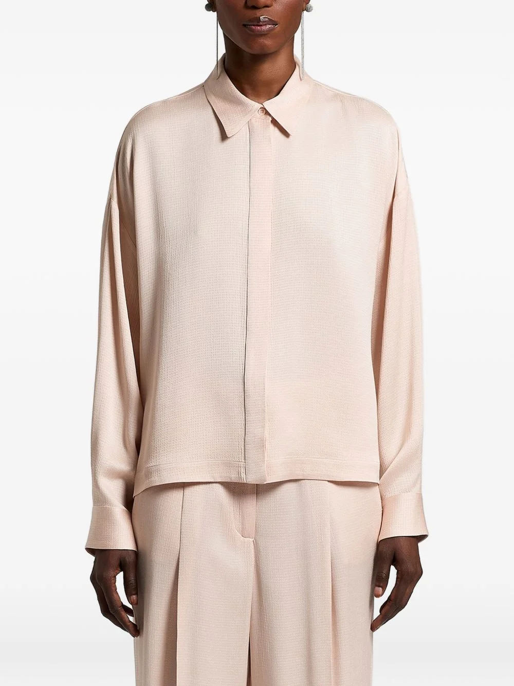 collared long-sleeve shirt Highlights - Light pink - Long sleeves - Point collar - Button fastening Made in Italy Composition Acetate 74%, Viscose 26% Washing instructions Dry Clean Only
