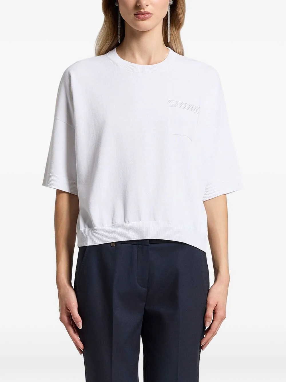 cotton pocket knitted T-shirt Highlights - White - Knitted construction - Chest pocket - Round neck - Short sleeves - Ribbed hem Made in Italy Composition Cotton 100% Washing instructions Read Manufacturer Guidelines