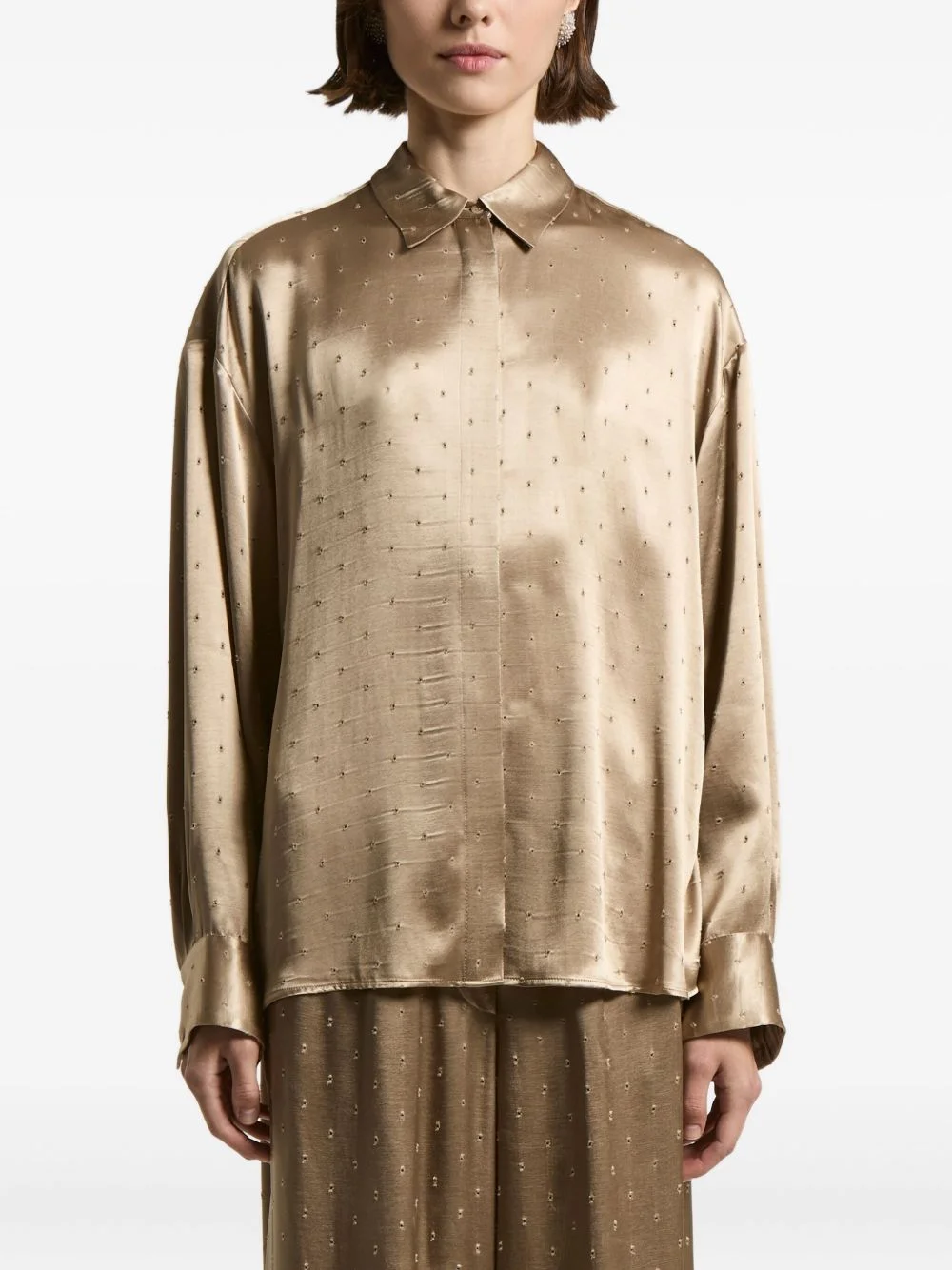 dot-pattern shirt Highlights - Gold camel - Dot pattern - Collared neckline - Long sleeves - Button fastening Made in Italy Composition Satin 100% Washing instructions Read Manufacturer Guidelines