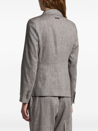 double-breasted blazer Highlights - Brown - Double-breasted - Button fastening - Notched lapels Made in Italy Composition Outer: Flax 56%, Virgin Wool 44% Lining: Viscose 100% Washing instructions Read Manufacturer Guidelines