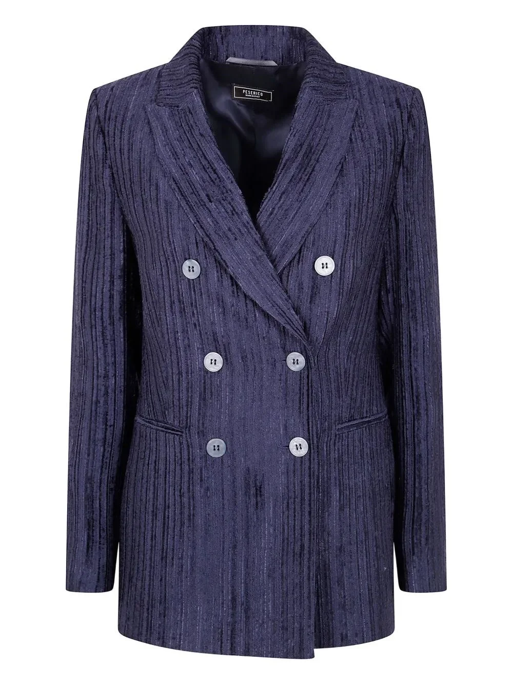 Introducing the 'DOUBLE BREASTED VELVET JACKET' from PESERICO, a luxurious addition to your fall-winter wardrobe. Crafted from 100% exquisite viscose, this jacket in a rich blue hue captures attention with its elegant silhouette and sophisticated double-breasted design. Made in Italy, it embodies the essence of artisanal craftsmanship. Ideal for evening soirees or upscale gatherings, it can be paired effortlessly with tailored trousers or a chic dress. Embrace exclusivity with this timeless piece, designed for those who appreciate quality and style. Elevate your look with this versatile jacket that adapts to your unique persona.. MadeIn: Italy IT Product code: E01401H.02763 060 BLUE