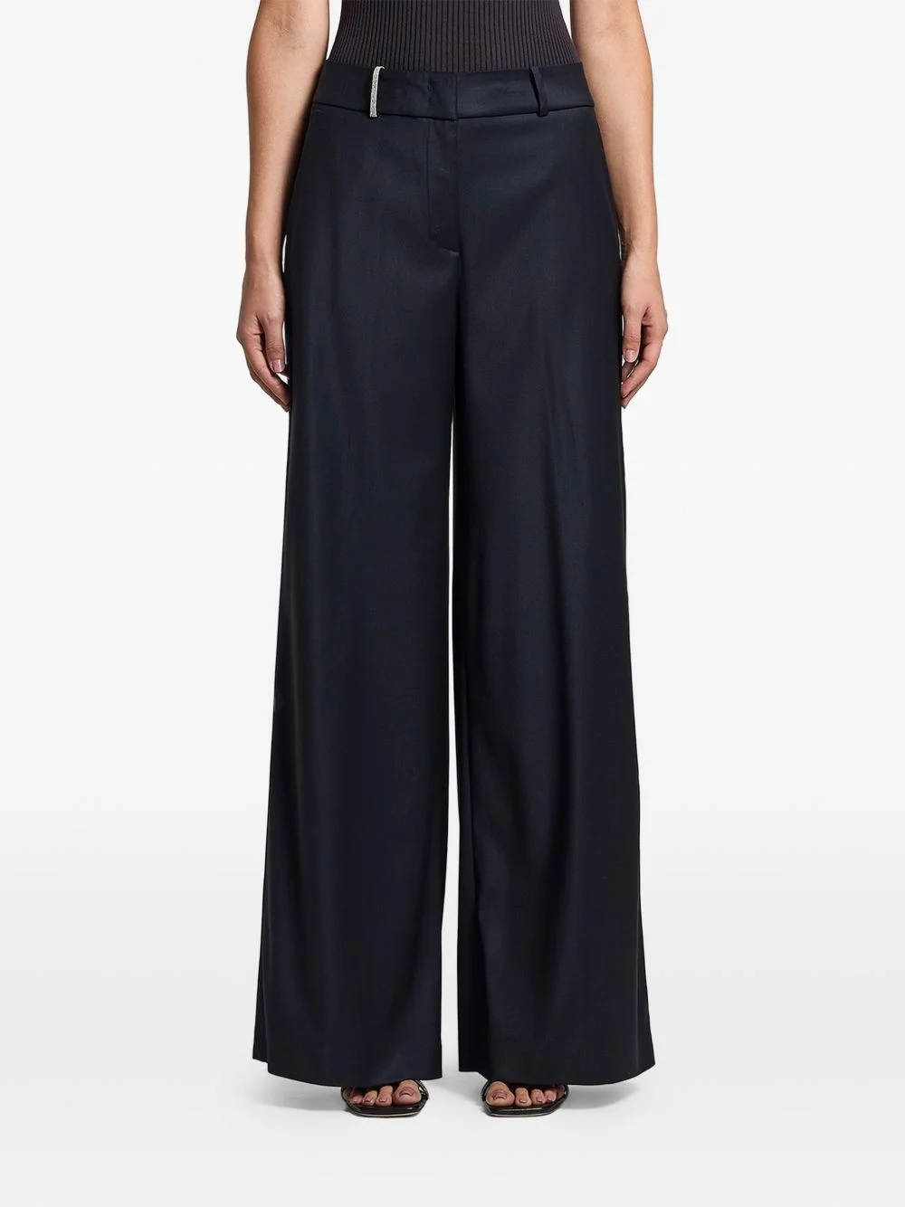 embellished twill trousers Highlights - Navy blue - Wide leg - Embellishment - Belt loops - Side pockets - Rear welt pockets Made in Italy Composition Virgin Wool 60%, Viscose 37%, Elastane 3% Washing instructions Dry Clean Only