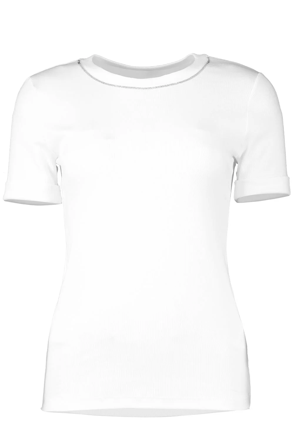 DETAILS AND INSIGHT Peserico embroidered neckline tee in pure white. Stretch microrib jersey Dry Clean Made in Italy Style S06840J0-05669-300