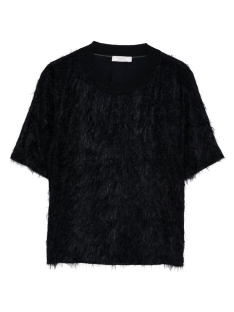 fringed crew-neck T-shirt Highlights - Off-white - Short sleeves - Crew neck - Fringed texture Made in Italy Composition Silk 100%, Wool 100%, Acetate 56%, Viscose 44% SIZE & FIT Model measurements Height 5 ft 10 in(1.79 m) Bust/Chest 31.88 in(81 cm) Hips 35.43 in(90 cm) Waist 23.62 in(60 cm) Washing instructions Dry Clean Only