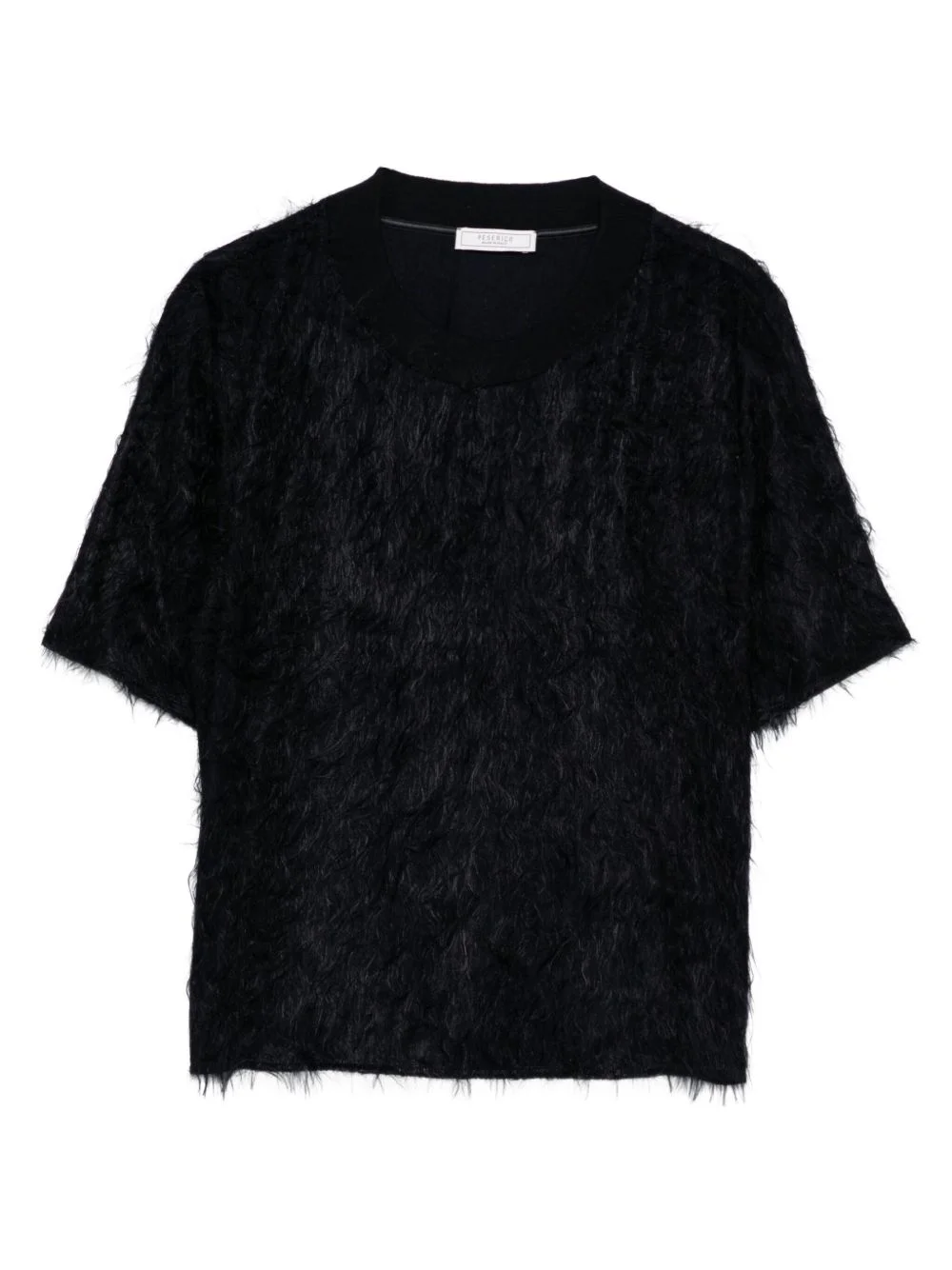 fringed short-sleeve T-shirt Highlights - Black - Short sleeves - Crew neck - Fringed texture - Straight hemline Made in Italy Composition Wool 100%, Acetate 56%, Viscose 41%, Silk 3% SIZE & FIT Model measurements Height 5 ft 10 in(1.78 m) Bust/Chest 33.46 in(85 cm) Hips 36.22 in(92 cm) Waist 23.22 in(59 cm) Washing instructions Dry Clean Only