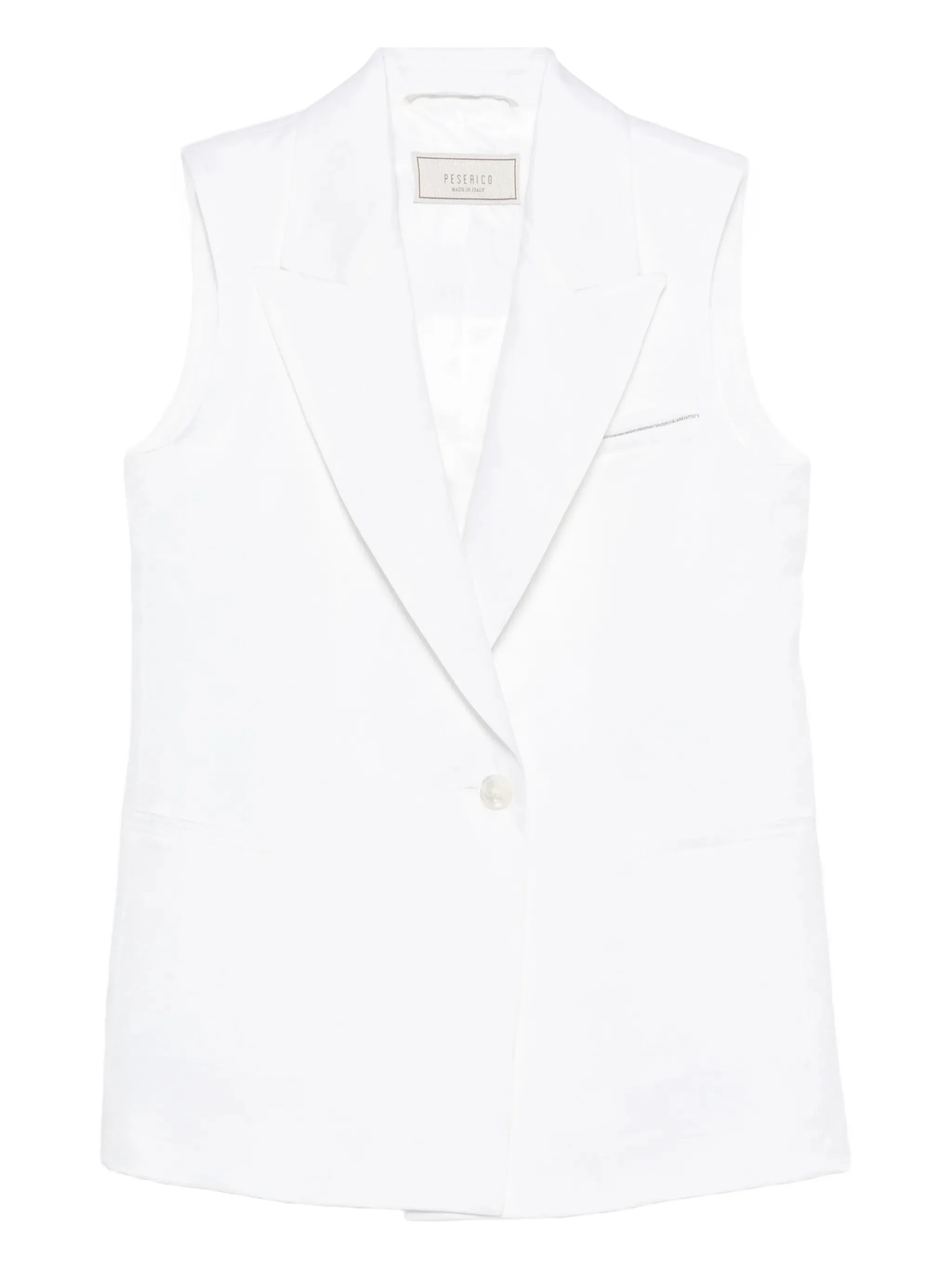 natural white lapel button fastening sleeveless welt pocket front flap pockets - Color: WHITE - Made in: Italy - Designer Style ID: A03028A 01926 900 Composition and care Outer Composition Linen/flax: 41.0%, Outer Composition Viscose: 59.0%, Lining Composition Viscose: 100.0%