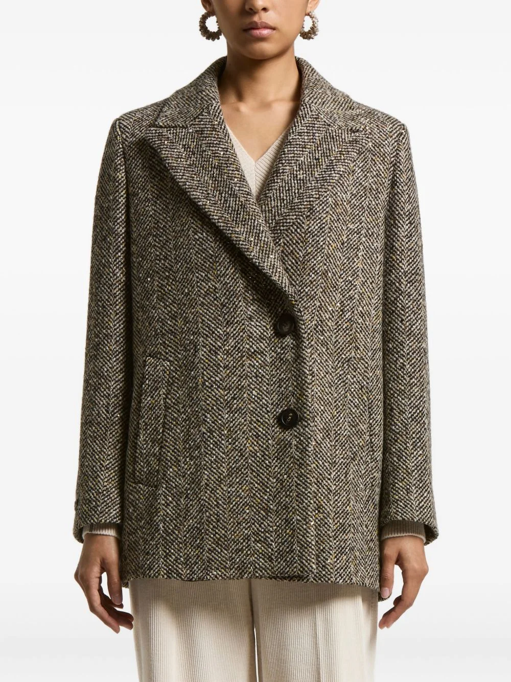 herringbone tweed coat Highlights - Brown - Herringbone pattern - Notched lapel - Double-breasted fastening - Patch pockets Made in Italy Composition Fabric 100% Washing instructions Read Manufacturer Guidelines