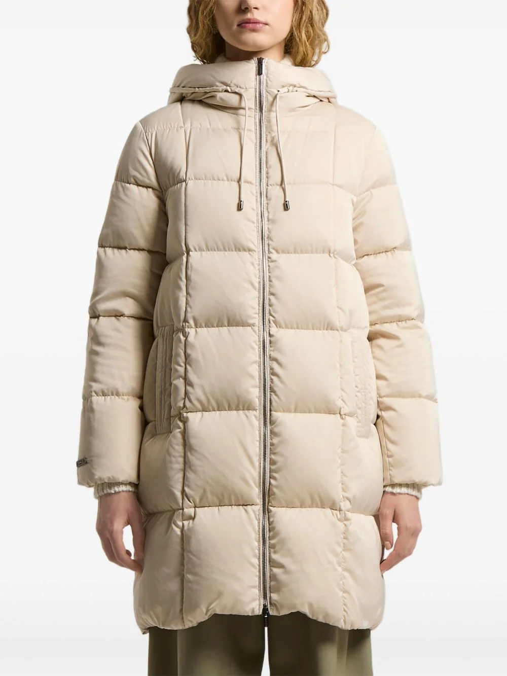 hooded padded coat Highlights - Beige - Hooded neckline - Zip fastening - Long sleeves - Straight hemline Made in Italy Composition Outer: Polyester 100% Lining: Goose Down 90%, Goose Feather 10% Washing instructions Read Manufacturer Guidelines