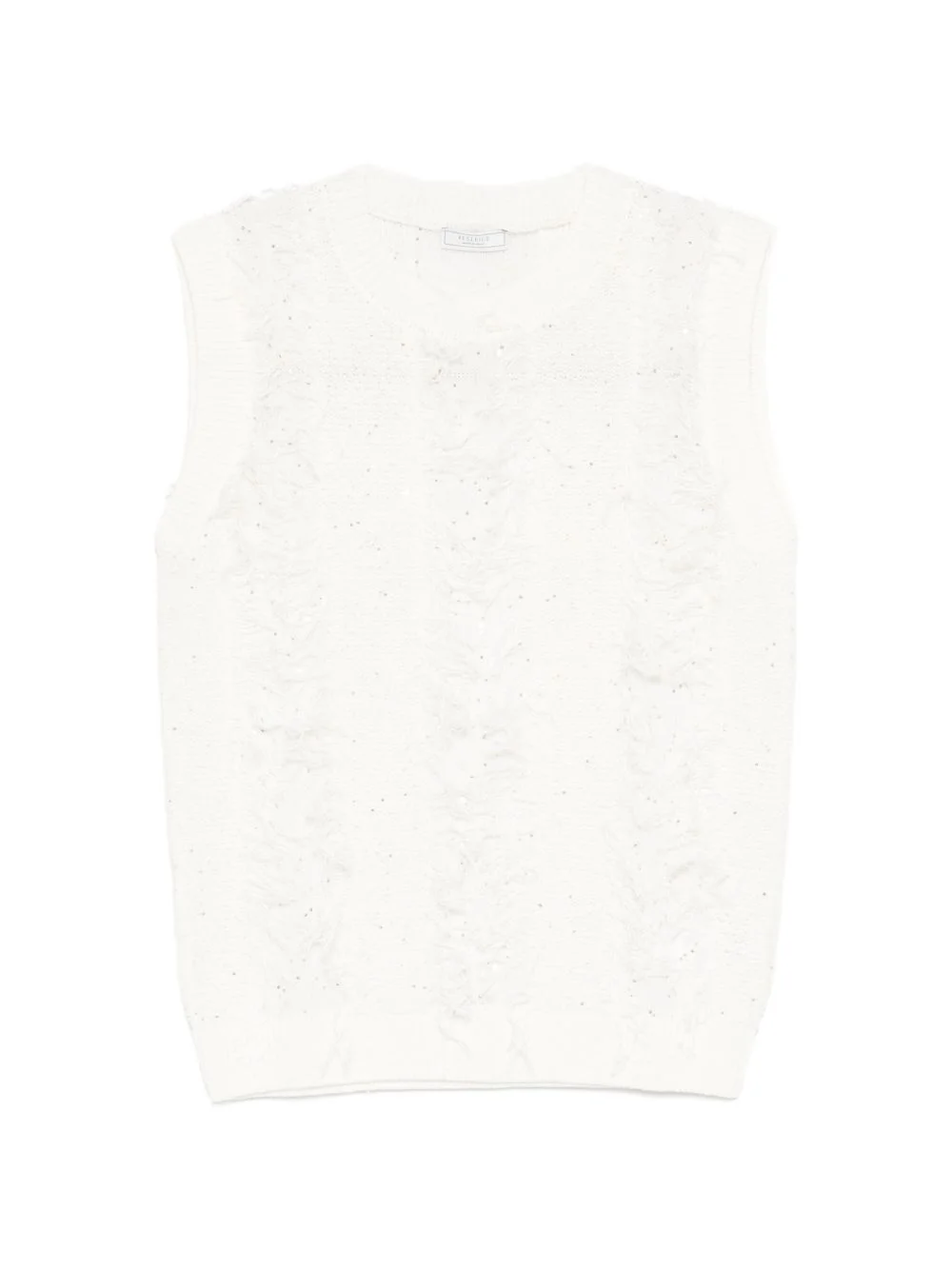 knitted sequin-embellished vest Highlights - White - Knitted construction - Round neck - Sleeveless Made in Italy Composition Linen/Flax 69%, Cotton 29%, Polyester 2% Washing instructions Hand Wash