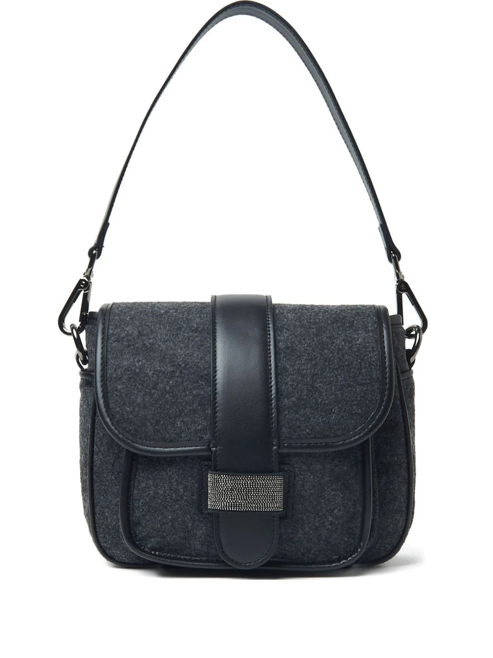 leather-trimmed shoulder bag Highlights - Grey - Leather trim - Crystal-embellished clasp - Top handle - Detachable shoulder strap Made in Italy Composition Outer: Leather 100%, Wool Felt 100%