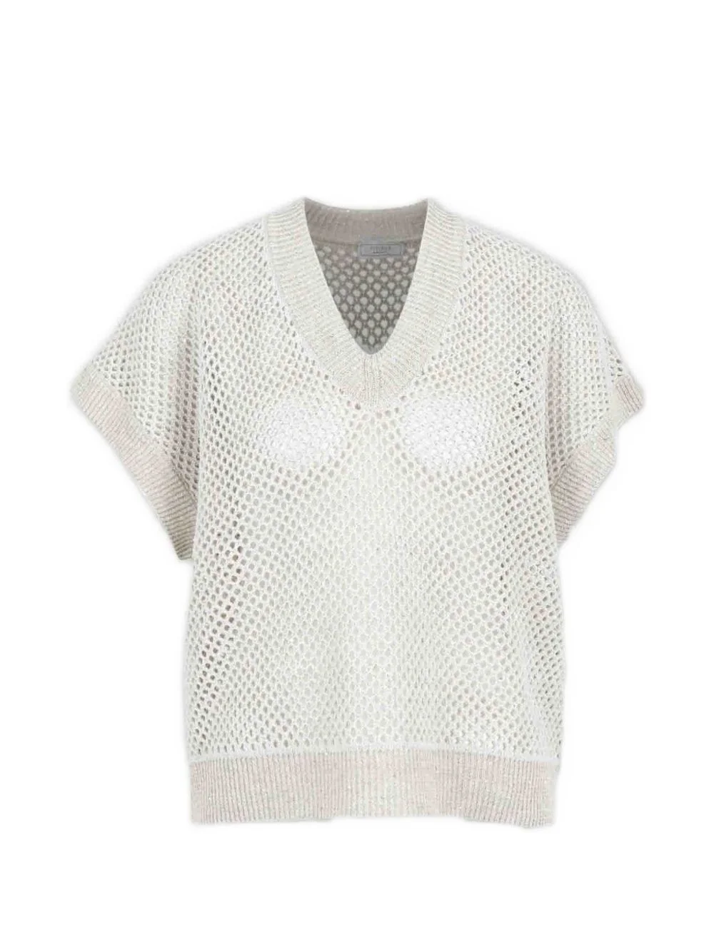 V-neck open-knit top Highlights - Beige - Open knit - V-neck - Short sleeves - Ribbed trims Made in Italy Composition Fabric 100% Washing instructions Read Manufacturer Guidelines