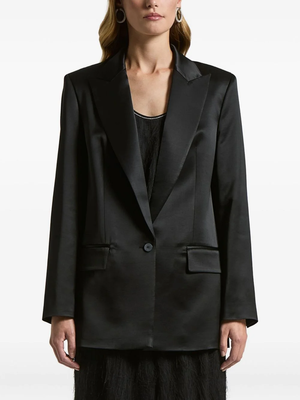 long-sleeve blazer Highlights - Black - Button fastening - Notched lapels - Front flap pockets - Long sleeves - Buttoned cuffs Made in Italy Composition Viscose 77%, Virgin Wool 23% Washing instructions Read Manufacturer Guidelines