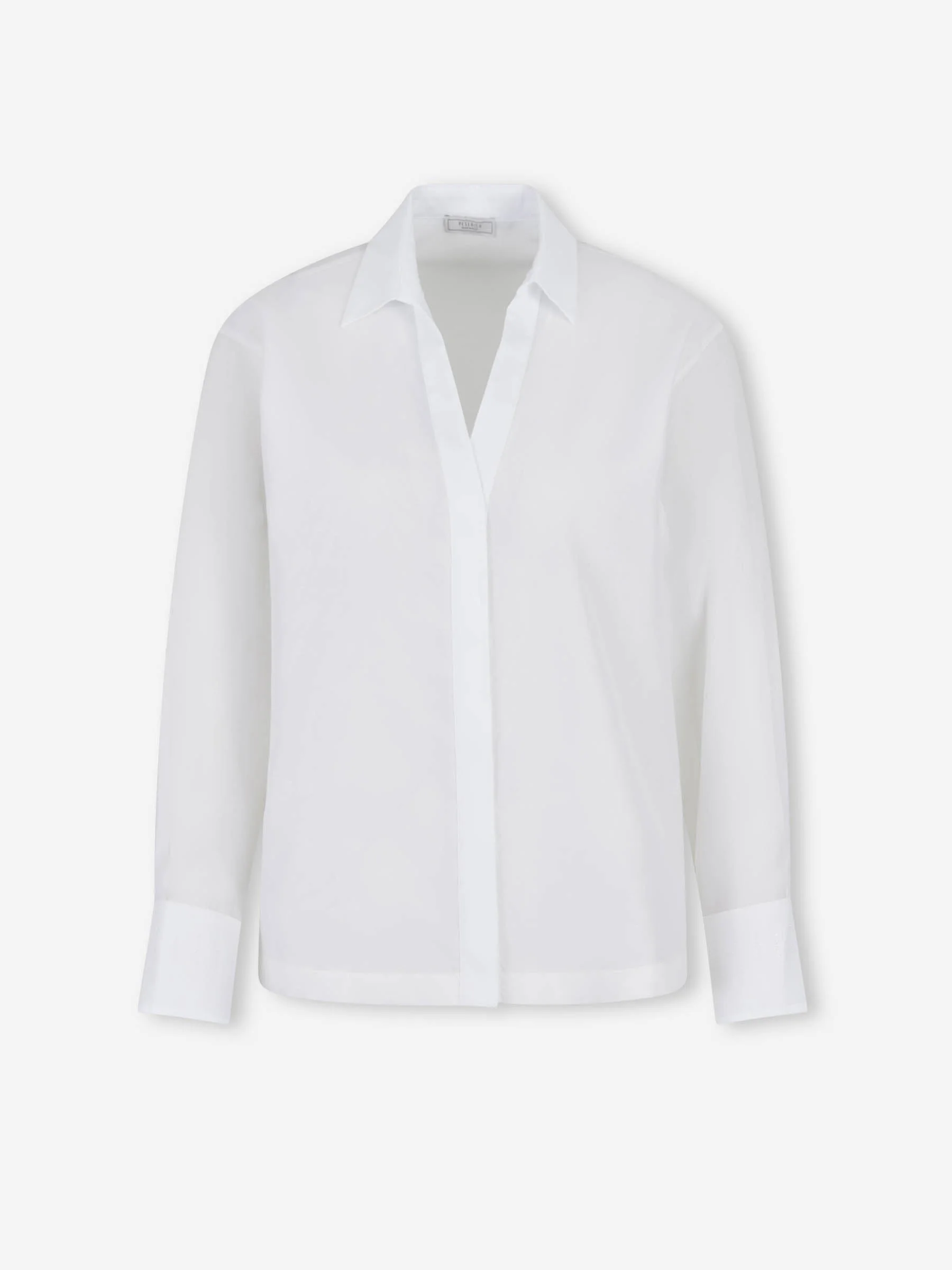 SKU: 701-002408 01 BRAND ID: A0634500Q 's shirt By Peserico • Made from a blend of cotton and silk • Shirt collar • Central button panel on the front • Buttoned cuffs with rhinestone detail • Composition: 87% cotton, 33% silk • Made in: Italy