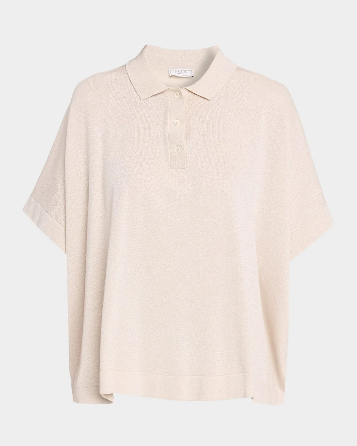 Crafted from cotton vanise with Lurex metallic yarn for added shine, this Peserico polo shirt features a boxy silhouette softened with relaxed lines. Approx. 21.3" from shoulder to hem Spread collar; three-button placket Short sleeves Side vents Ribbed trim Boxy fit Pullover style Cotton/viscose/metallic fibers Dry clean, hand wash Made in Italy SIZE & FITPesericoModel measurements: 5'10" tallModel is wearing a US size 4/Small